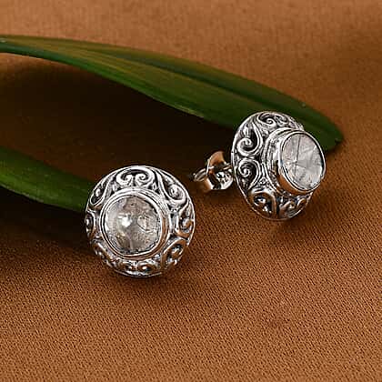 Royal Bali Collection- POLKI Diamond Stud Earrings in Sterling Silver 1.00 Ct.