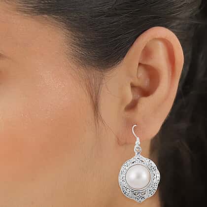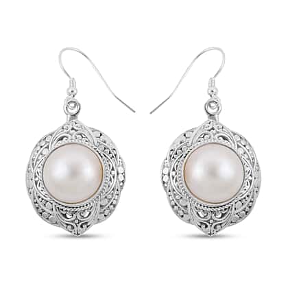 Royal Bali Collection- White Mabe Pearl Stud Hook Earrings Sterling Silver, Silver Wt 10.72 Gms