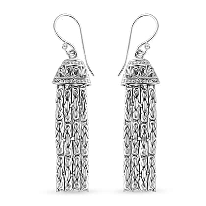 D'joy Royal Bali Collection Handmade Borobudur Tassel Earrings with Hook in Sterling Silver