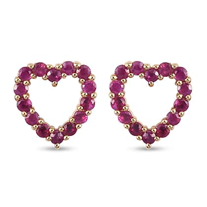 1.1 Ct. Ruby Heart Stud Earrings in Gold Plated Sterling Silver