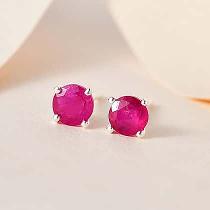 Ruby Solitaire Stud Earrings in Sterling Silver