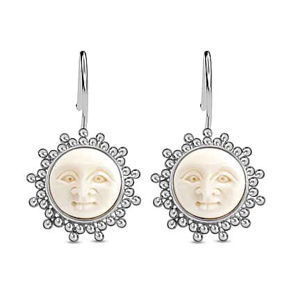 Sajen Silver BALI GODDESS COLLECTION - OX Bone Carved Face Earrings in Sterling Silver, Silver Wt. 6 Gms