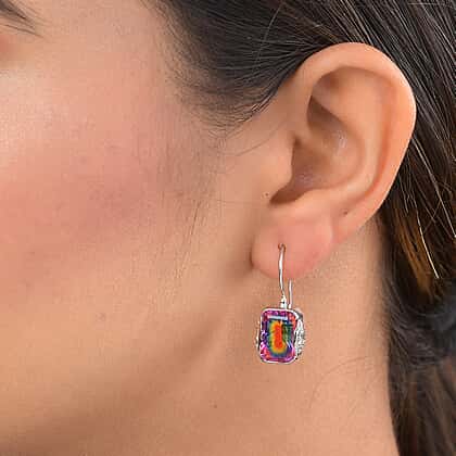 Sajen Silver Celestial Collection - Quartz Doublet Celestial Starlight Hook Earrings in Rhodium Overlay Sterling Silver 9.15 Ct