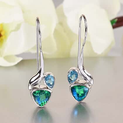 Sajen Silver 5.95 Ct. Rainbow Iris Mystic Quartz and Peacock Triplet Quartz Earrings in Rhodium Plated Sterling Silver