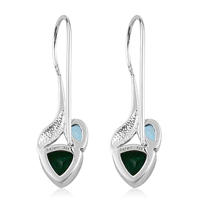 Sajen Silver CULTURAL FLAIR Collection- Quartz Doublet Rainbow Carribean, Quartz Doublet Celestial Swiss Blue Peacock Earrings in Rhodium Overlay Sterling Silver 5.95 Ct.