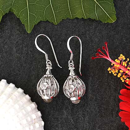 Sajen Silver- Gem Healing Collection 3.3 Ct White Quartz Earrings in Rhodium Plated Sterling Silver