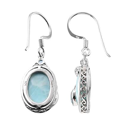 Sajen Silver Larimar and Blue Doublet Quartz Hook Earrings in Platinum Overlay Sterling Silver 0.3 Ct.