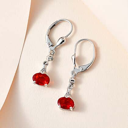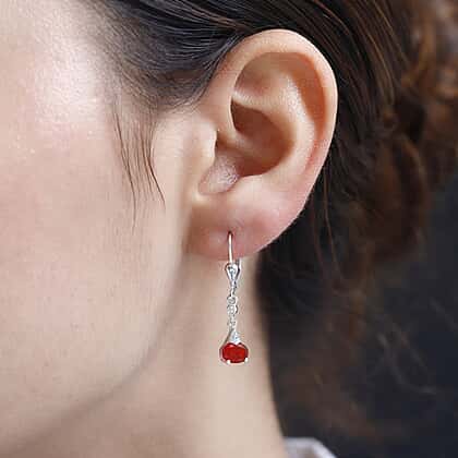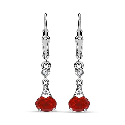 Salamanca Fire Opal & Natural Zircon Dangle Earrings in Platinum Overlay Sterling Silver 1.10 Ct