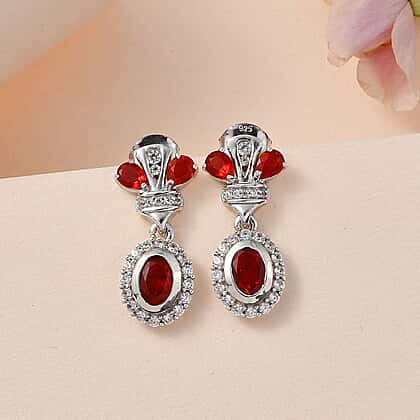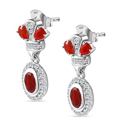 Salamanca Fire Opal & Natural Zircon Dangle Earrings in Platinum Overlay Sterling Silver 1.70 Ct.