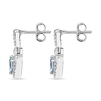 Santamaria Aquamarine and Natural Zircon Dangle Halo Earrings in Rhodium Overlay Sterling Silver