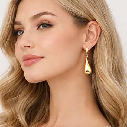 Sculpted Fluid Teardrop Earring with Hoop in Yellow Gold tone
