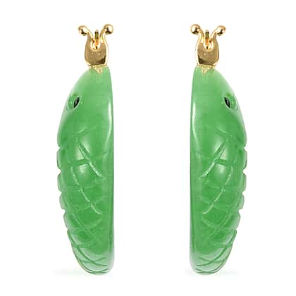 48 Ct Green Jade Snake Hoop Earrings in Gold Plated Silver