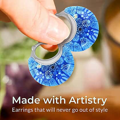 A touch of artistry and colour comes alive in this set of 2 blue Murano-style glass basket earrings. The intricate floral patterns in rich blue tones create a vibrant, eye-catching look, perfect for both everyday wear and special occasions. These earrings are crafted with hypoallergenic stainless steel, meaning they’re gentle on sensitive skin, resistant to tarnish, and designed to last. Their lightweight design ensures comfort, while the unique glasswork makes each piece feel special. Murano-inspired glass is admired for its originality and colour depth, giving these earrings a timeless appeal that never goes out of style.