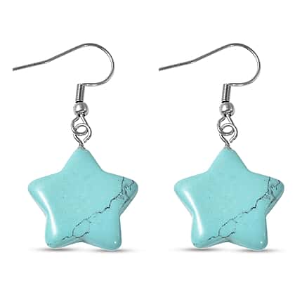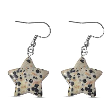 Set of 2 - Dalmation Jasper and Blue Howlite Star Hook Earrings in Stainless Steel