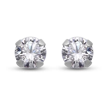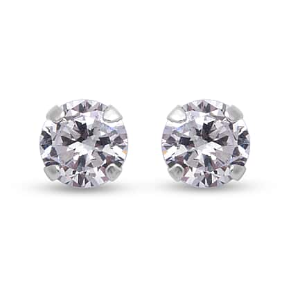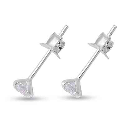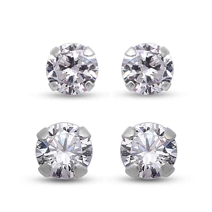 Set of 2 - Cubic Zirconia Solitaire Stud Earrings with Push Backs in Silver