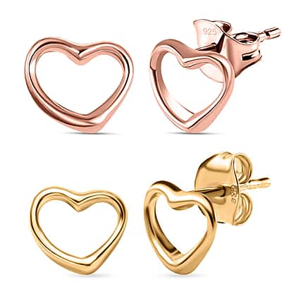 Celebrate love with this charming set of heart earrings. Crafted in 925 sterling silver, each pair features a sleek, open-heart silhouette finished in 18K vermeil yellow gold and 18K vermeil rose gold. Both styles are hypoallergenic, tarnish-resistant, and safe for sensitive skin. The minimalist design offers everyday elegance and meaningful symbolism. Whether gifting or self-treating, these earrings blend quality and sentiment beautifully. Their delicate shape sits comfortably on the ear with secure push-post fastenings. Ideal for mixing metals or wearing solo, they complement every outfit. Perfect for women who cherish modern classics with emotional depth and timeless appeal.
