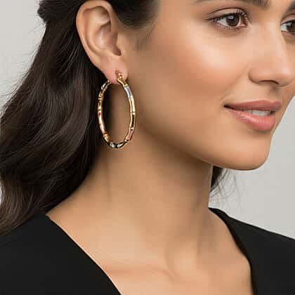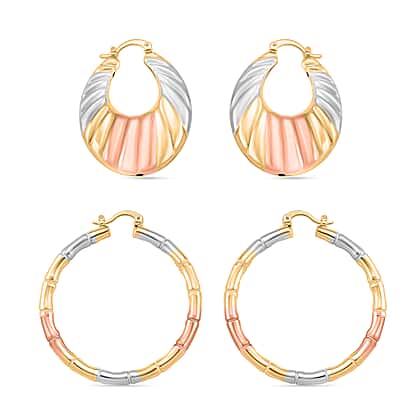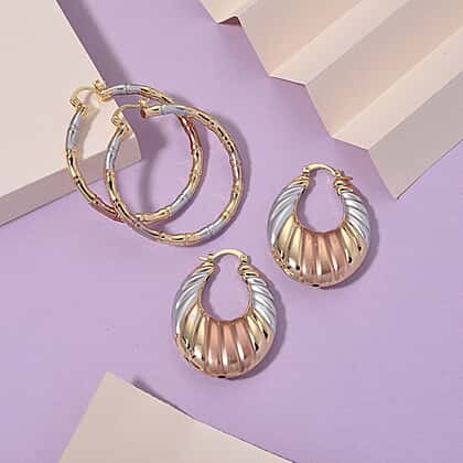 Set of 2 - J Hoop Half Hoop Earring with Clasp in Tri Colour