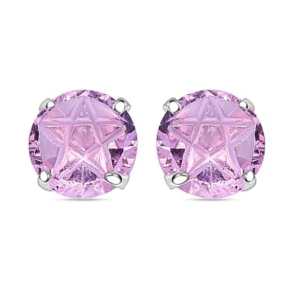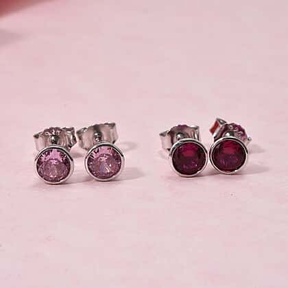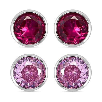Set of 2 - Simulated Pink Sapphire (Rnd), Simulated Ruby Stud Earrings (with Push Back) in Rhodium Plated Sterling Silver