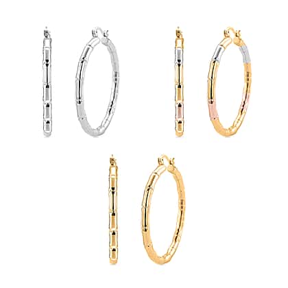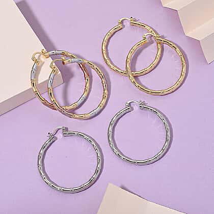 Set of 3 - J Hoop Half Hoop Earring with Clasp in Tri Colour Tone