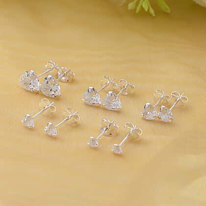 Set of 5 - Cubic Zirconia Solitaire Earrings Sterling Silver 8.60 Ct.