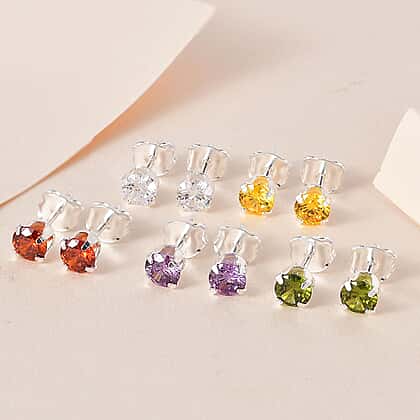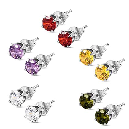ELANZA Set of 5 - Simulated Multi Gemstones Stud Earrings in Sterling Silver