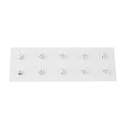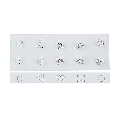 Set of 5 - Simulated Diamond Princess, Round, Oval, Heart and Trillion Shape Earrings (with INDIVIDUAL STERLING SILVER Push Backs) in Sterling Silver