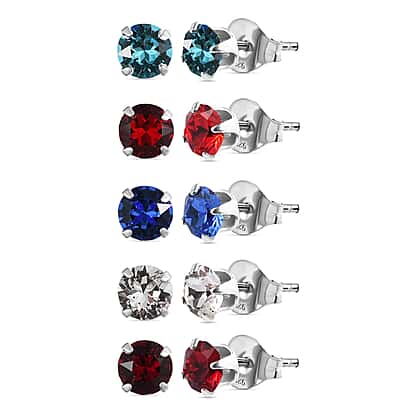 This set of five stud Austrian crystal earrings is sure to elevate the look of your outfit with its muti-colour collections. These earrings are made from sterling silver with a fine finish to give them a unique look. These simple and elegant studs feature crystal rounds secured in a four-prong setting and have multi-faceted cuts to give out more sparkle and shine. You can wear these earrings all day long.
