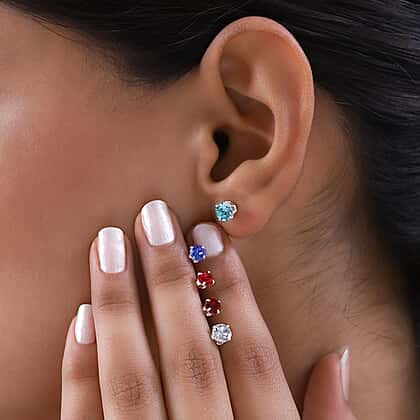 Set of 5 - White Austrian Crystal, Sapphire, Light Siam, Siam Colour, Light Turquoise Austrian Crystal Earrings With Push Back in Sterling Silver