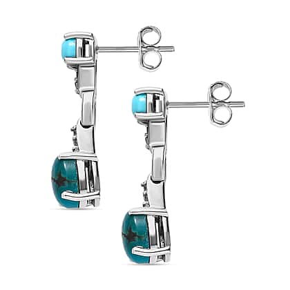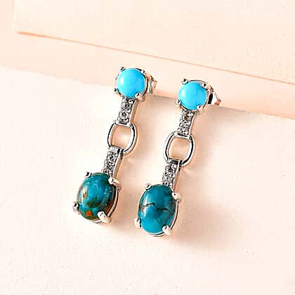 Sierra Nevada Turquoise, Natural Zircon and Arizona Sleeping Beauty Turquoise Earrings in Platinum Overlay Sterling Silver 2.52 Ct.