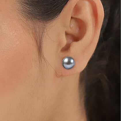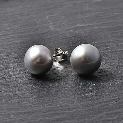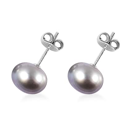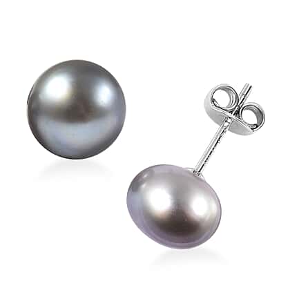 Silver Grey Freshwater Pearl Stud Earrings in Rhodium Overlay Sterling Silver