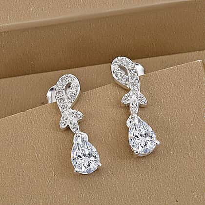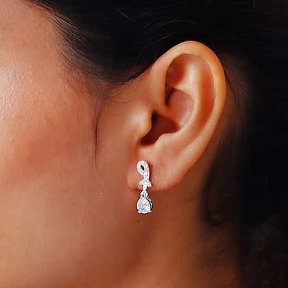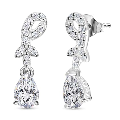 Now sparkle with these lovely white cubic zirconia dangling earrings crafted in 925 sterling silver. The artwork of this piece of jewellery resembles snowflakes. The teardrop cut cubic zirconia hangs from the solid shank, studded with a round faceted cut cubic zirconia with shared prongs. This drop earring dangles every time you make a move or sway your head. The pear faceted cut cubic zirconia is held by 3 prong setting and looks delightful. Get this fine jewellery to style up your or that special person's style statement.