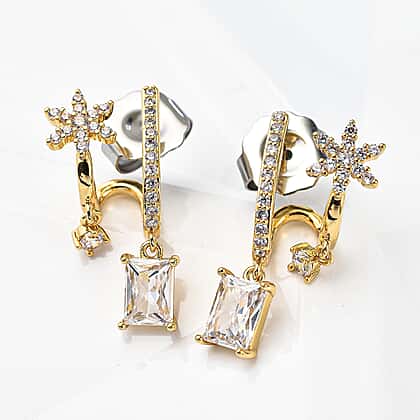 Simulated Diamond Double-Layered Floral Earrings in Yellow Gold Tone