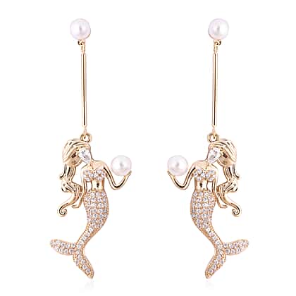 Simulated Pearl and Simulated Diamond Mermaid Earrings in Gold Tone