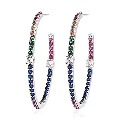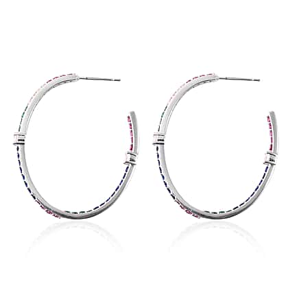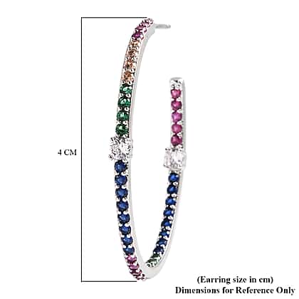 Simulated Rainbow Sapphire Earrings (with Push Back) in Silver Tone