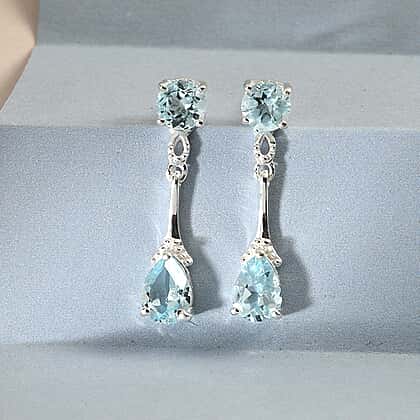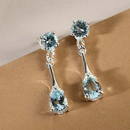 2.75 Ct Sky Blue Topaz Drop Earrings in Sterling Silver with Push Back