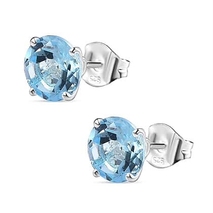 Skyblue Topaz Solitaire Stud Earrings in Sterling Silver 4.83 Ct