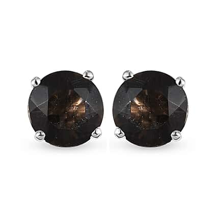 Smoky Quartz Stud Earrings in Platinum Overlay Sterling Silver 1.58 Ct.