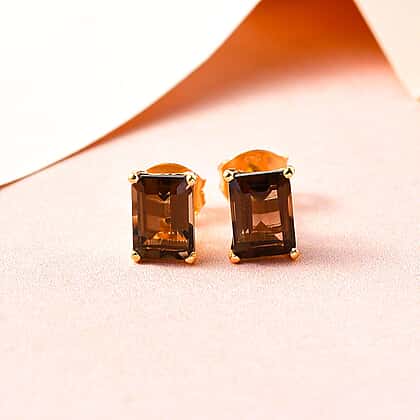 1.57 Ct Smoky Quartz Earrings in 14K Gold Plated Sterling Silver