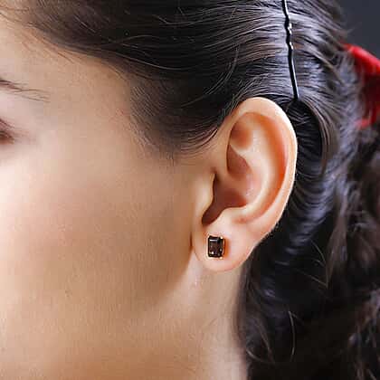 Smoky Quartz Stud Earrings With Push Back in 18K Vermeil Yellow Gold Plated Sterling Silver 1.83 Ct