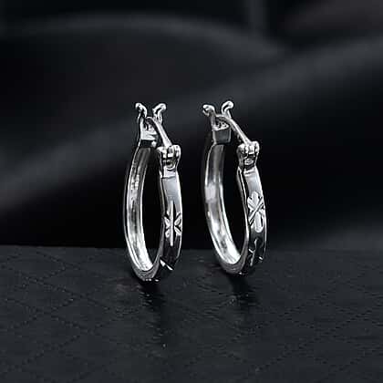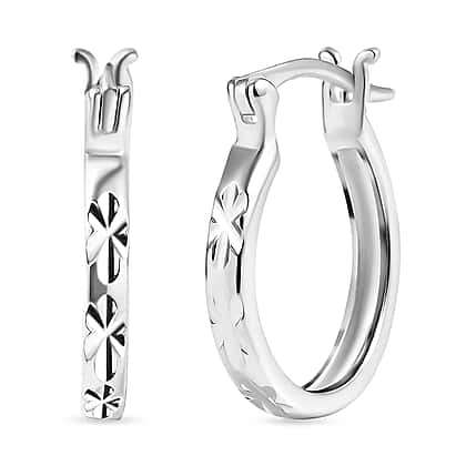 Sterling Silver Diamond Cut Hoop Earrings with Clasp