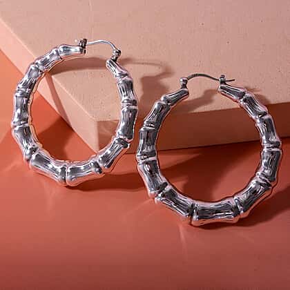 Sterling Silver Bamboo Hoop Earrings (With Clasp)