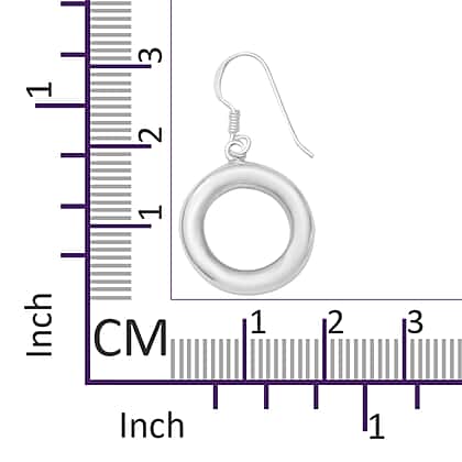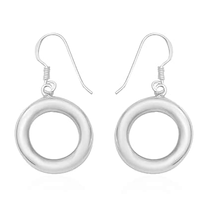 Open Circle Hook Drop Earrings in Sterling Silver 4.15 Grams