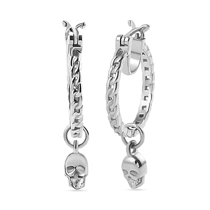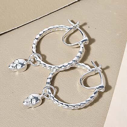 Sterling Silver Skull Charm Hoop Earrings (with Clasp)