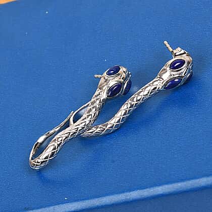 Sunday's Child 1 Ct. Lapis Lazuli Serpent Earrings in Platinum Plated Sterling Silver