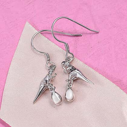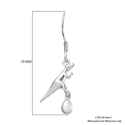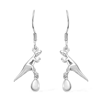 Dinosaur Hook Earrings in Platinum Plated Silver