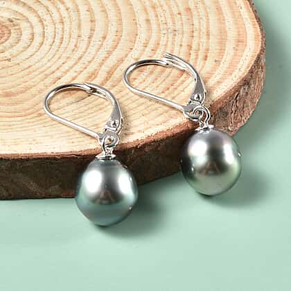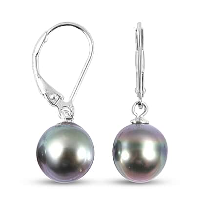 Tahitian Pearl Lever Back Drop Earrings in Rhodium Overlay Sterling Silver