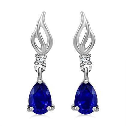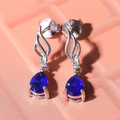 Tanzanian Blue Spinel & Natural Zircon Dangle Earrings With Push Back in Rhodium Overlay Sterling Silver 0.96 Ct.