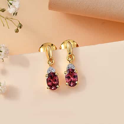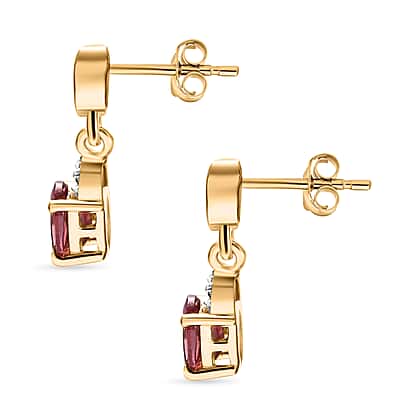 Tanzanian Blush Garnet & Natural Zircon Dangle Earrings in 18K Vermeil Yellow Gold Plated Sterling Silver 1.18 Ct.