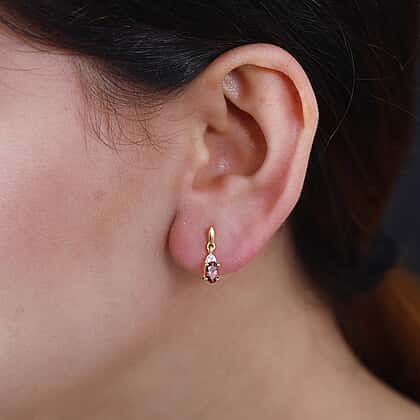 Tanzanian Blush Garnet and Natural Zircon Dangle Earrings in 18K Yellow Gold Vermeil Plated Sterling Silver 1.18 Ct