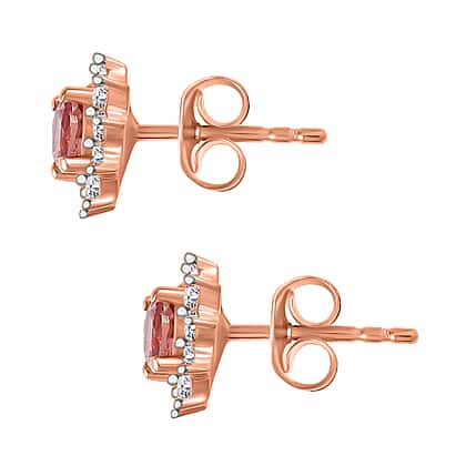 Tanzanian Blush Garnet & Natural Zircon Stud Earrings in 18K RG Vermeil Plated Sterling Silver 1.30 Ct
